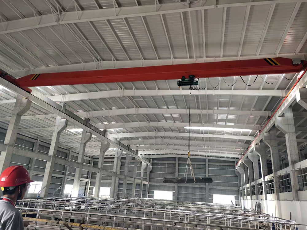 單梁橋式起重機是橫架于車間、倉庫和料場上空進行物料吊運的起重設備。由于它的兩端坐落在高大的水泥柱或者金屬支架上,形狀似橋。單梁橋式起重機的橋架沿鋪設在兩側高架上的軌道縱向運行,可以充分利用橋架下面的空間吊運物料,不受地面設備的阻礙。它是使用范圍廣、數(shù)量多的一種起重機械。