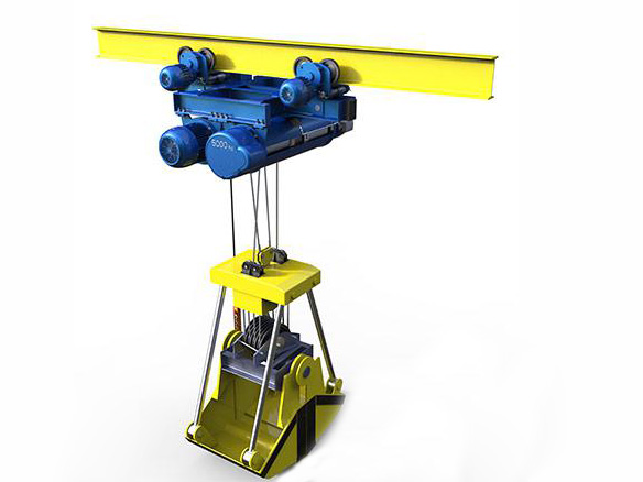 CD/MD型抓斗電動(dòng)葫蘆往往與懸掛小車(chē)、承載梁、四繩抓斗等相連接組成一種架空運(yùn)輸裝置(即抓斗起重機(jī)),可以不占場(chǎng)地,僅靠架空軌道運(yùn)行的懸掛式架空小車(chē)來(lái)實(shí)現(xiàn)工段與工段之間、車(chē)間與車(chē)間之間、工廠與工廠之間的大量散粒物品的裝卸和運(yùn)輸。