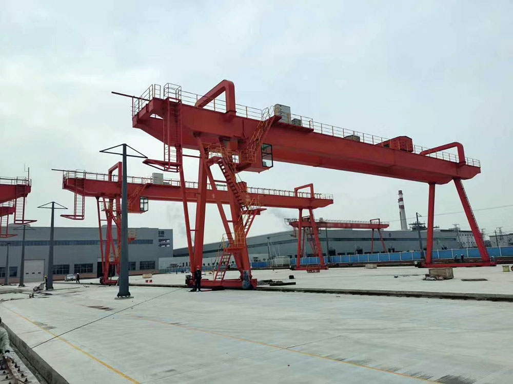 它的金屬結(jié)構(gòu)像門(mén)形框架,承載主梁下安裝兩條支腳,可以直接在地面的軌道上行走,主梁兩端可以具有外伸懸臂梁。